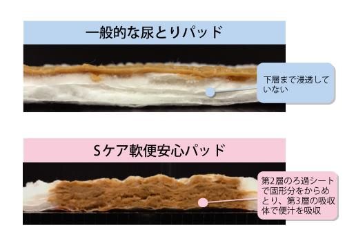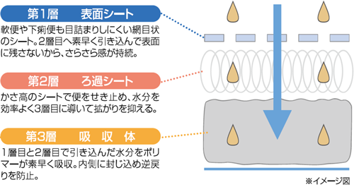 便をろ過する三層構造で、下痢便や軟らかい便を吸収。