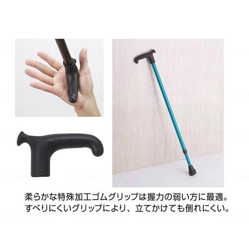 欧米各国で愛用されているリハビリ用T字型杖。日本の医師や介護専門家からもすでに高い評価を得ています。グリップは特殊加工のソフト樹脂のため、握力の弱い手にもしっくりとフィットします。また杖先の接地面積が広いため安定性に優れています。