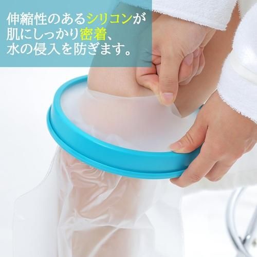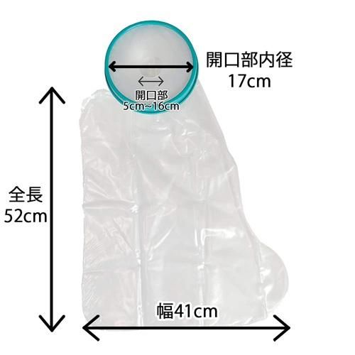 足にギプスや包帯を装着したままでもシャワーを浴びることができる、全長が52cmの防水カバーです。 大きく広げられる伸縮性の高いシリコン製の間口が包帯やギブスを水濡れからガードします。