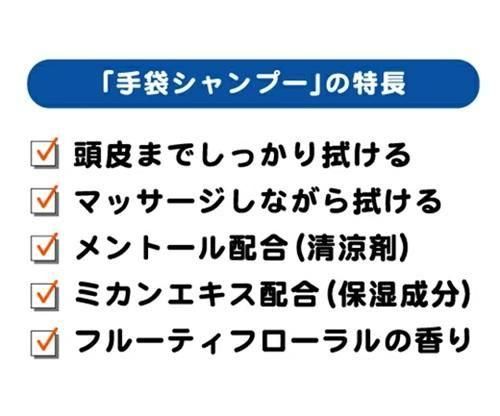 ・手袋型のため力を入れて頭皮までしっかりと拭き取ることができます