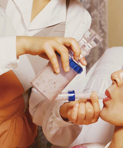●ノズルゴム部からは1回で小さじスプーン1杯分、3回で大さじ1杯分の量が出ます。これは介助者が