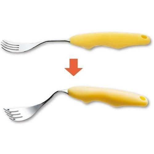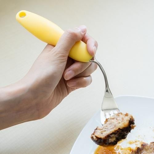 ネックは前後左右、自由に角度を変更可能。利き手に関係なく、すくい持ち、鉛筆持ち、握り持ちができるため、最も食べやすい角度にヘッドの位置を決めることができます。高齢者やお使いのスプーン、フォークが持ちにくいと感じている人、握る力の弱い人、手や指、腕の筋力が弱い人、ひじ、肩の関節に軽い運動障害がある人にも安心してお使いいただけます。