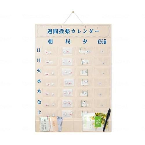 ・水性マジックで書き込めるのは、透明ビニールの部分だけです。(例:週間投薬カレンダー1日3回用なら、ポケット部)「病院へ行く日」など、予定を書いてご利用ください。ティッシュペーパーで、簡単に消えます。
