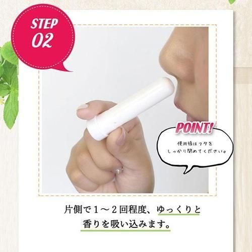 本体を鼻腔に近づけ、ゆっくり深呼吸しながら香りを吸い込んでください。