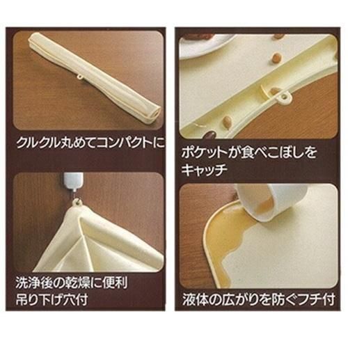 お食事の際の食べこぼしに安心。テーブルの汚れを防ぎます!
